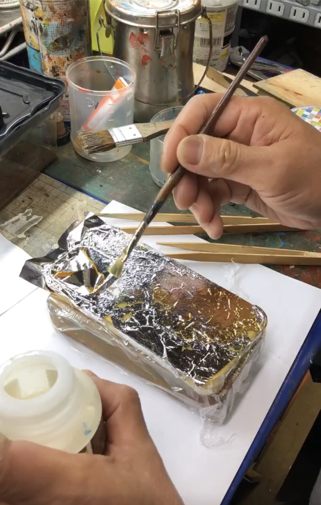 テーブル代わりになっていた畳一畳分のうるし絵。久しぶりに塗った。